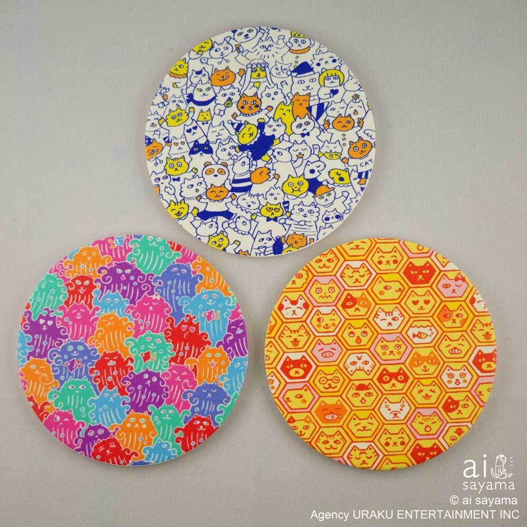 ai sayama 美濃燒珪藻土吸水杯墊 世間都是貓