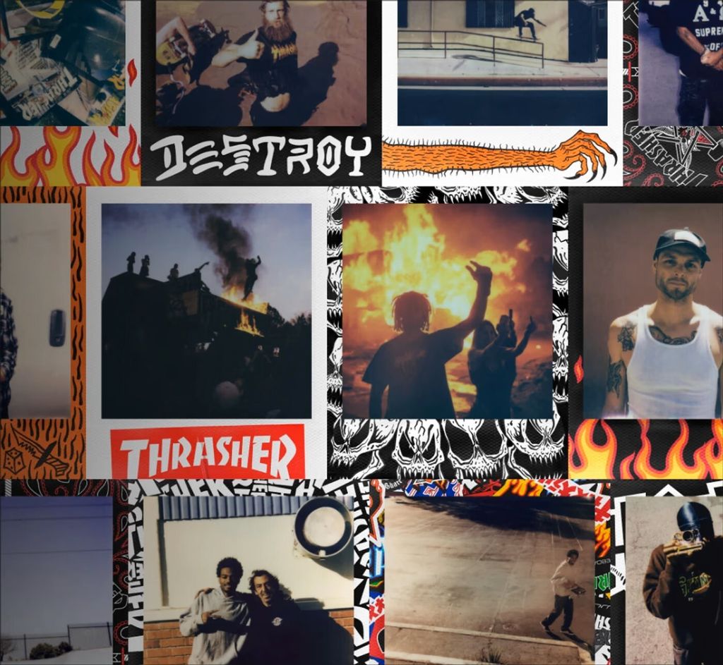 Thrasher Magazine 於1981年在舊金山創立,40多年來一直是滑板界的頂尖刊物。除了雜誌,其影片和數位媒體也廣泛傳播,展示了最棒的滑板文化、次文化和相關人物 。這個始於地下室的事業已發展成全球性的現象,滑板玩家們在各大洲都代表著「SKATE AND DESTROY」(滑板與破壞)的精神 。